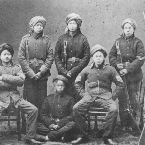 A presumably elite unit of the Ever Victorious Army, Taiping Rebellion. I have seen this this image described as a photo of Godron’s bodyguard. However, the modern western arms and tactics were shared by the entire fighting force.