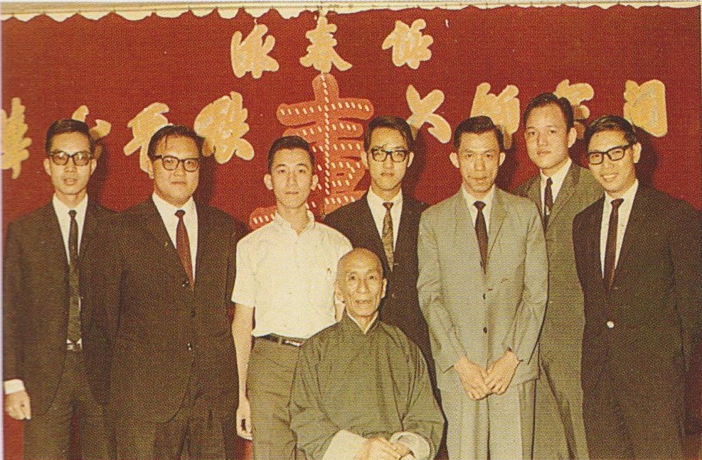 Ho Leun standing to the left of Ip Man. Source: Ip Ching and Ron Heimberger. Mook Yan Jong Sum Fat. 2004.