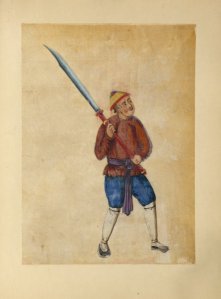 Image of man with long handled blade.New York Public library.pu dao
