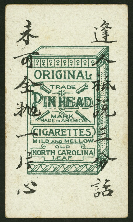 The next card, like the first, was distributed with “Pirate” brand cigarettes. It is more likely that this was part of a run marketed primarily to Chinese consumers in Shanghai or some other large city. This card was part of a much longer series illustrating popular Chinese sayings or aphorisms (notice that no English translations have been provided).