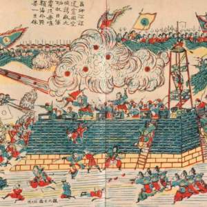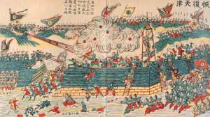 Chinese woodblock print showing the recapture of Tianjin during the Boxer Rebellion