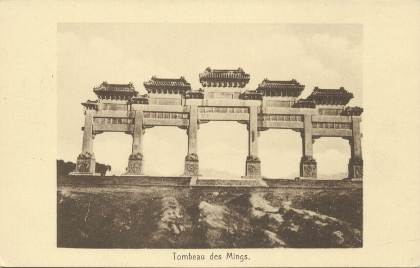Vintage Postcard (probably 1920s) showing the approach to the Ming Tombs.  Source: Public Domain.