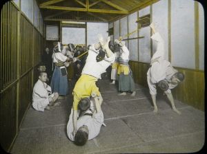 Japanese dojo.magic lantern glass slide