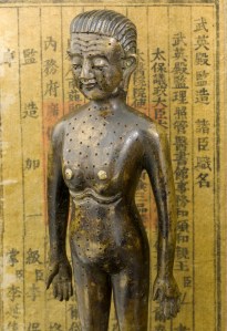 L0057614 Bronze acupuncture figure, in silk covered box bearing text