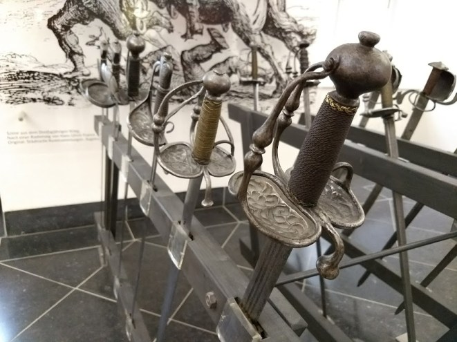 This brings us to the second recent event. After a short 24 hour layover in Ithaca, I departed for the 1st St. Martin’s Conference hosted by the German Blade Museum in Solingen. In addition to an excellent collection of swords from around the world, this institution also hosts an extensive assortment of period fight books. These volumes became the theme to this year’s conference which was titled “Fight Books in Comparative Perspective.” The conference was two full days (November 9-10), but this time I was able to stay a little longer to explore Dusseldorf and catch the start of the carnival season (that is a subject for a different blog post).