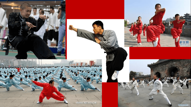 Still, the current set of images gives us much to think about. Every one of these images features individuals (in some sort of “traditional” costume) performing complex sets. In two cases we have pictures of individual performers, and the other three emphasize mass movement in romantic locations. It would appear that the Chinese martial arts are defined in the public imagination by dance like taolu. Four of the five photos also feature Asian students.