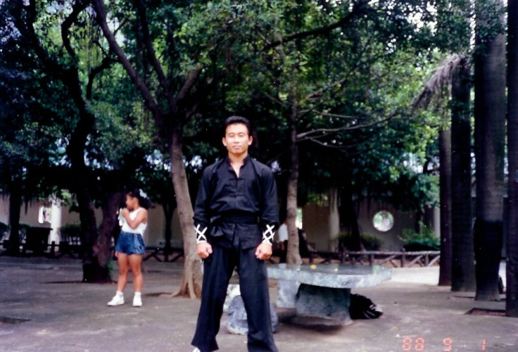 However, the daily routine in the park began to change with the arrival of a “storm”, this time not a typhoon. At that point of time, all the martial arts we were exposed to were traditional ones. Far away in Beijing, a young American named Jeff Falcon (b. 1962) went to train with the Beijing wushu team, and afterwards arrived to Taibei. He demonstrated movements we had never seen before, and also taught private classes to foreigners. To our great amazement, he challenged Zhang Kezhi to a duel; fortunately this never happened, but filled us with tremendous excitement for a while. Falcon would appear in a number of martial arts films with his most notable role being in the Six-String Samurai.