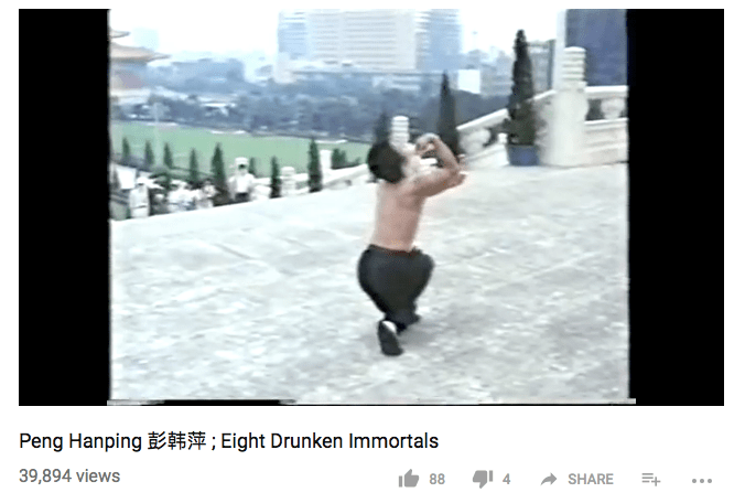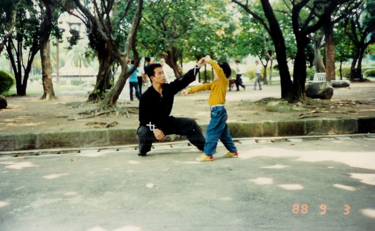 When I met Xiao Peng he had already learned, from teacher Zhang Kezhi (張克治), southern fist and “Eight Drunken Immortals” (Zui Baxianquan 醉八仙拳). Zhang made a name of himself as a martial artist and teacher of “Five animals southern Shaolin” (aka “Taiwanese Hung-Gar”). This style arrived to Taiwan in 1946 with Zhang’s teacher Lin Jiakun (林家坤), who was a commander in the national army. Zhang Kezhi was what we would call a “character”. Since he was at the park every day, he would “take over” the class from Xiao Peng, stroll around in kicking leafs, or spend time in his other hobby – pushing hands with the Taiji teachers in the park, which he always performed well.
