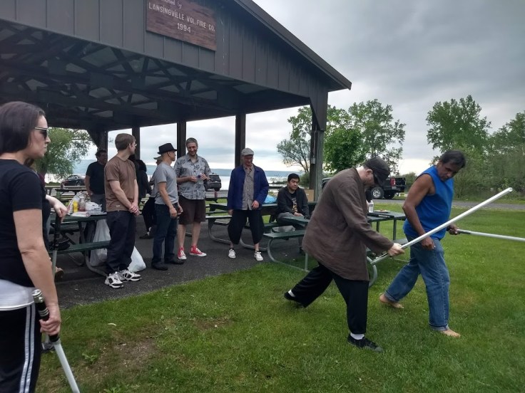 All in all, we had a great mix of people. Local martial arts instructors and amateur scholars had a chance to chat with faculty members from a number of institutions and disciplines. Rain early in the afternoon may have suppressed turnout at first (granted, precipitation in Ithaca never comes as a shock), but by 3:00 the sun came out and we enjoyed beautiful views of Cayuga Lake.