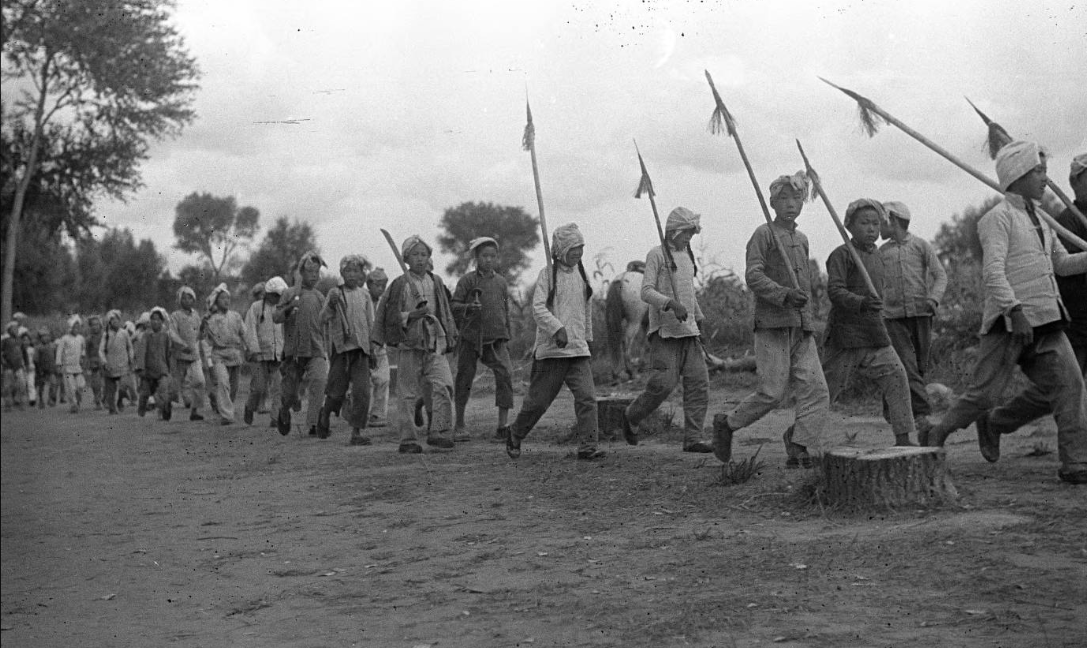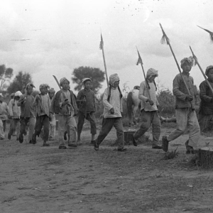 Yan’an (China), children armed with weapons walking along road – AGSL Digital Photo Archive