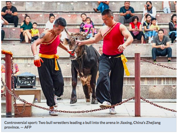 Calling this an art, or somehow more “real” than Spanish bull fighting, seems like a stretch. But the sudden appearance of this practice (unknown to the international press just last year), suggests that it would make a great case study on the “invention of tradition” in the Chinese martial arts. Or perhaps you could use it to delve into the evolving construction of masculinity within the martial arts. Calling all graduate students…