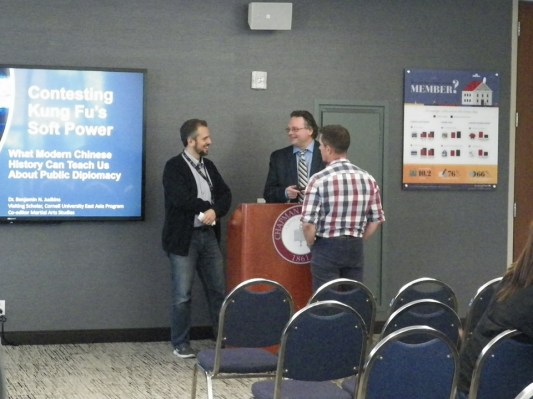 Finally (or perhaps inevitably), it was time for my own keynote titled “Contesting Kung Fu’s Soft Power: What Modern Chinese History Can Teach Us About Public and Cultural Diplomacy.” Turning to two distinct media discourses that arose within the Chinese martial arts in the 1930s, I asked when, and under what circumstances, the traditional fighting systems can be effectively deployed in the pursuit of “soft power” within the global system.