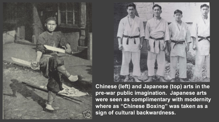 Public diplomacy is in some ways a form of political advertising, and it is always easier to sell customers an item that they already want, rather than to attempt to convince them that they should really be wanting something else. Images of heroic “big sword” wielding troops were easier to absorb and repurpose in the 1930s than Chu’s more nuanced points about the fundamentally modern and progressive nature of the Chinese martial arts.