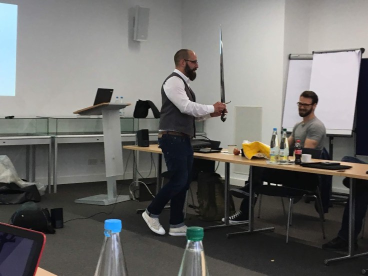 Going one step further, Sixt Wetzler, from the German Blade Museum in Solingen, passed around one of his own most prized possessions – his favourite sword. He did so to let us all feel what it is like to hold a sword, during his presentation ‘Reconsidering the Riddle of Steel: What Does a Sword Do?’