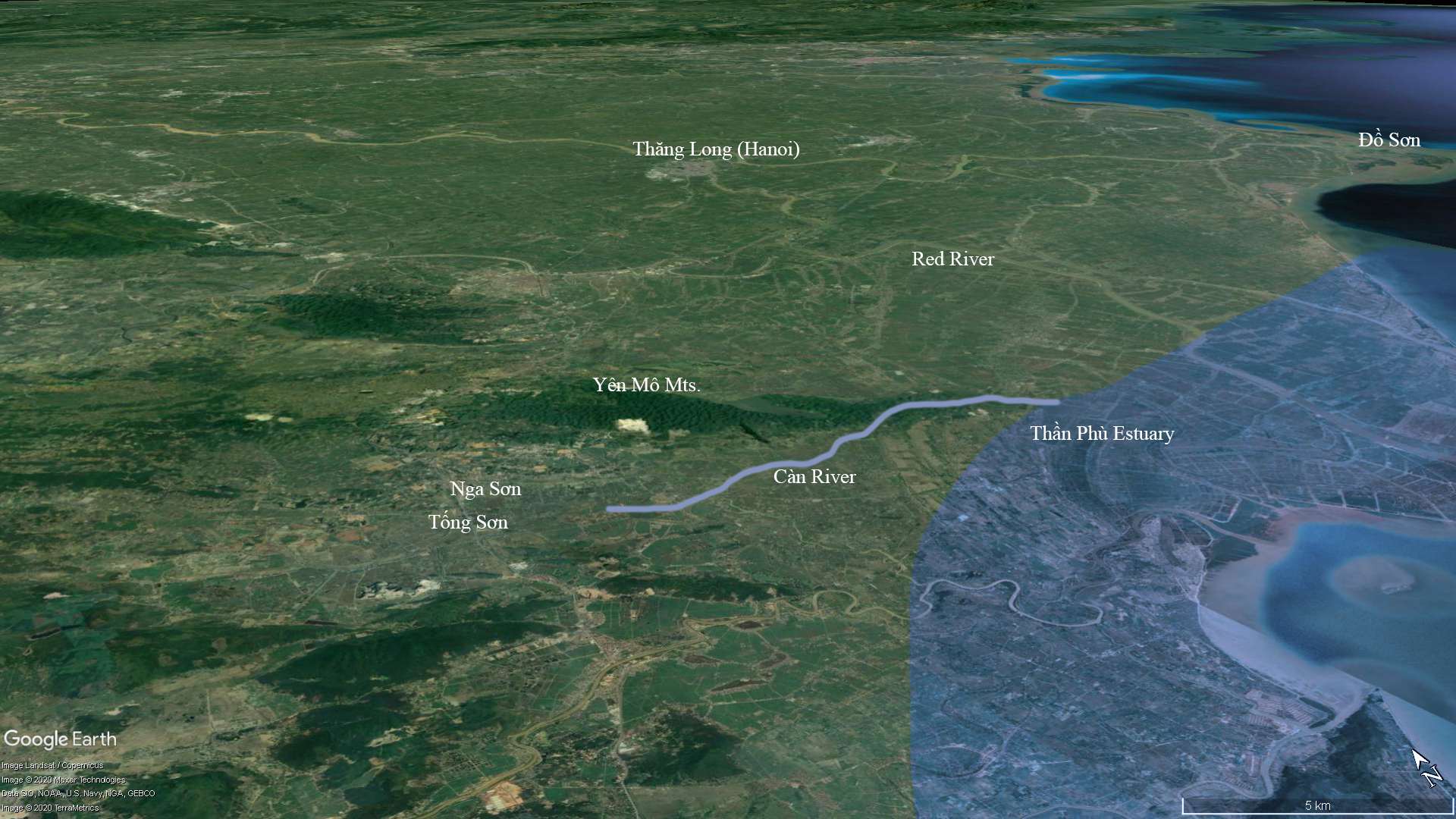 But in this case, Mạc Kính Điển was in unfamiliar waters, the Thanh Hóa coast. By contrast, Trịnh Kiểm (1503–1570) understood his homeland well as a later member of Trịnh Duy Sản’s military clan, which would banish the Mạc from the Red River Delta thirty-five years later. When Kính Điển followed Càn River upstream from the coast to the Tống Sơn, Nga Sơn hinterland, Kiểm outmaneuvered him by circling the Yên Mô mountain north of the river and striking Kính Điển from behind. His selection for the skiff assault was equally keen. As a native of the littoral district of Hoằng Hóa, Phạm Đức Kỳ (d.1557) was comfortable navigating the region’s waters.[8]