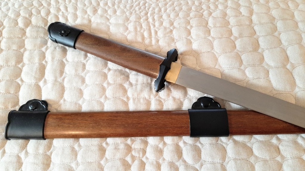 The blade feels quite dynamic in the hand and is even more nimble than LK Chen’s longer (but thinner) Han Jian. It points and thrusts naturally and can comfortably perform both jian and dao techniques. If pushed I might say that it feels slightly more like a late imperial jian than the relatively wide bladed civilian dao that most modern martial artists will be most familiar with.