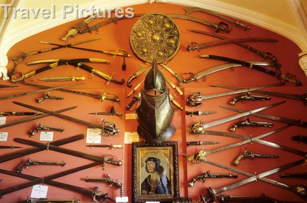 Of halberds there is great variety, ranging from simple lochaber ax and poleax to the cumbrous and complicated masses of metal that were so common at the close of the age of chivalry. The oddest specimen was one which, instead of an ax blade on one side, had what appeared to be a hammerhead. It would make a serviceable implement for driving picture nails in walls near the ceiling.