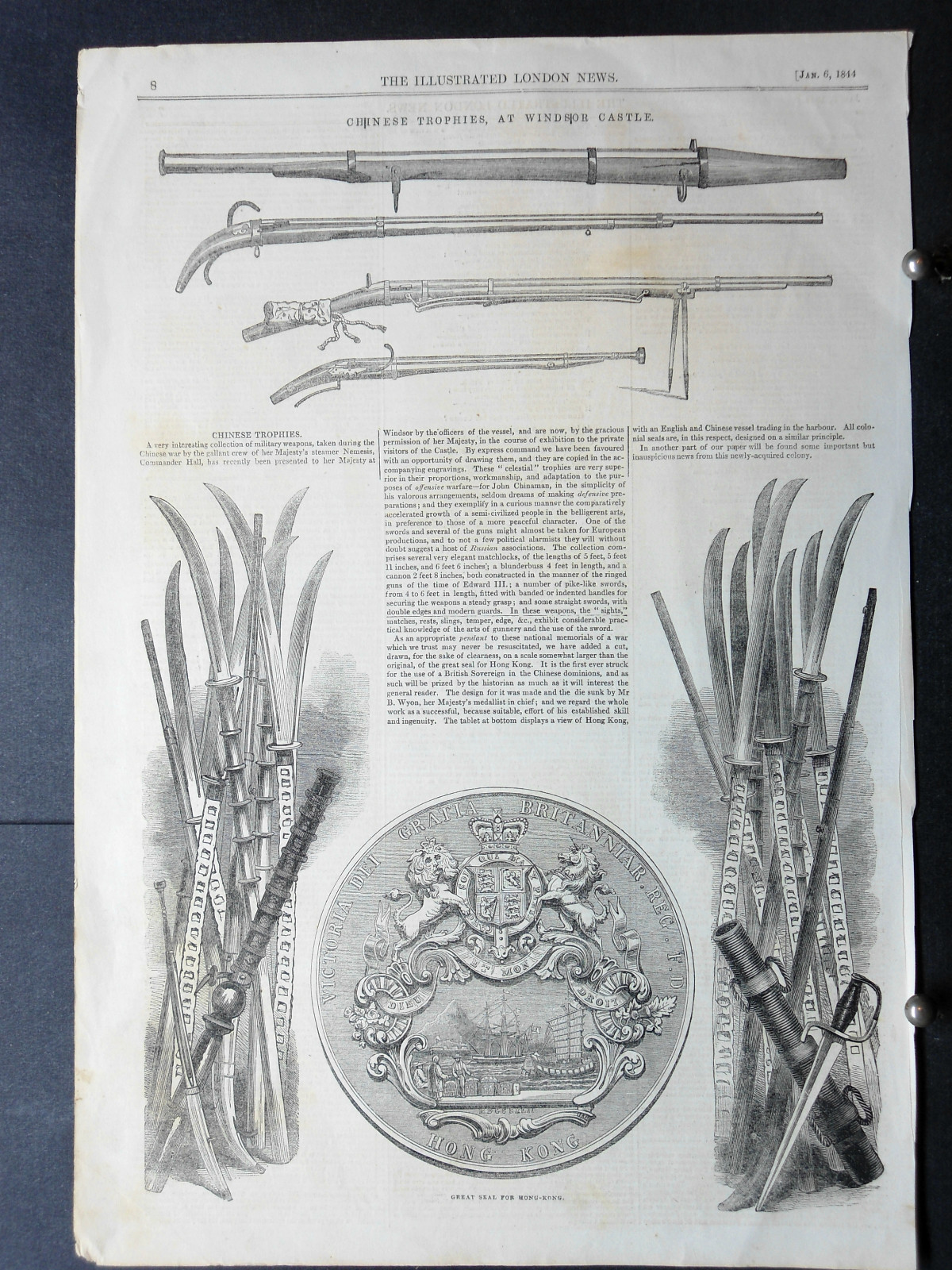 It was rare to encounter collections of Chinese artifacts of any kind in the 1820s and 1830s. However, the situation changed dramatically after the First and Second Opium Wars. The expansion of trade that followed these conflicts, the opening of new treaty ports, and the creation and growth of Hong Kong all created new zones where Chinese citizens and westerners could meet to change goods and artifacts of material culture. Unfortunately these meetings were not always peaceful and a large number of Chinese weapons started to be brought back to Europe as trophies. Many of these arms subsequently found their way into works of art. As a quintessentially exotic Chinese weapon, “double swords” were featured in early engravings and photographs.