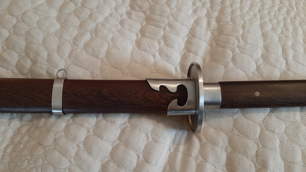 The blades polish was nice and it should hold up to reasonable cutting without too much marring. My review sword came quite sharp along most of the length of the blade, but the tip itself was a bit dull and might have to be touched-up before cutting. Unfortunately, I can’t include a report on that aspect of the sword’s handling in this review. The current blizzard conditions in New York State mean that outdoor cutting is out, and because of COVID-19 restrictions I don’t currently have access to an indoor studio with a high enough ceiling to accommodate this sword. I plan to do a follow up post on the miaodao later this year and I might be able to sneak some cutting into that. Still, my initial feeling is that this blade that should be capable of delivering devastating cuts and thrusts against a wide variety of targets.