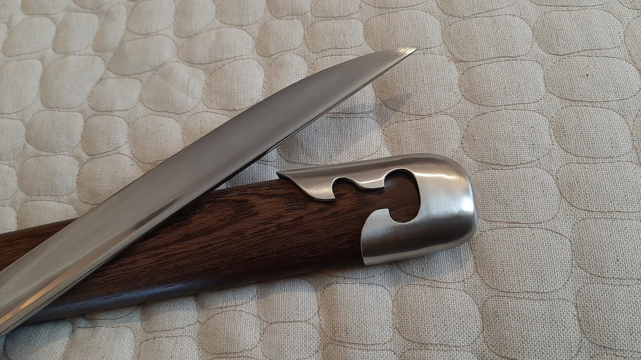 The build quality of the Silver Swallow is generally quite good. The Jichimu wood scabbard that held my blade was beautifully executed with no visible seams. Its fit to the blade was perfect and the saber seats itself with just the right amount of tension. The stainless-steel fittings are substantial and nicely done. They follow the same general pattern that is seen on most miaodao but have a sleek and modern feeling which befits a blade that is fundamentally a modern creation. My one complaint about the scabbard would be that the fittings seemed to be a bit too larger and did not always fight tightly against the wood. Obviously, cast stainless steel is a less plastic medium than brass for this sort of work, making minor adjustments more difficult.