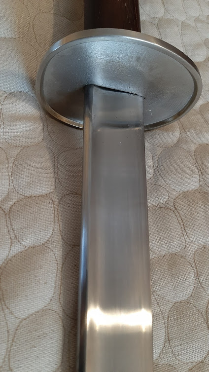 Given the great length of the sword, and its wide thin blade, one might be forgiven for assuming that the weapon would be somewhat floppy. Yet with the proper application of distal taper (9 mm at the base of the spine, 6.5 mm one third of the way down the blade and 2.5 mm at the tip), that has not proved to be an issue. The blade is flexible but not excessively so, and the pipe back profile makes the sword feel stiff in cuts and exercises.