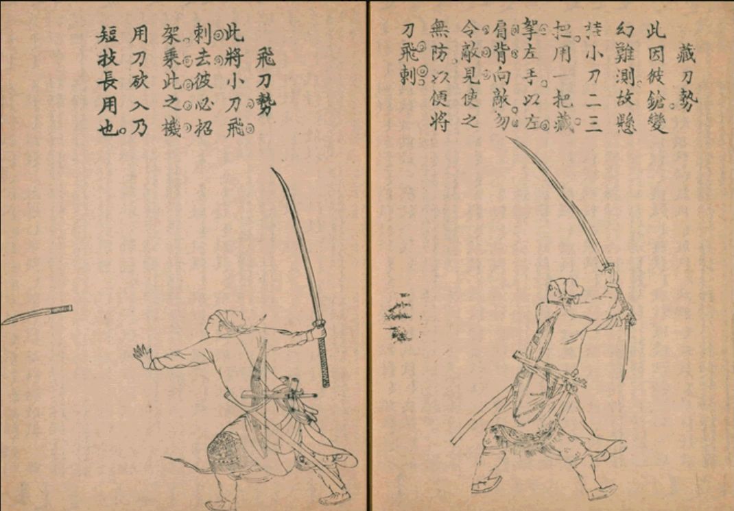 Nowhere is this clearer than with the miaodao (“sprout saber”). Most historical discussions of this weapon begin with events late in the Ming Dynasty. Cheng Zhongyou’s manual “Dan Dao Fa Xuan” (單刀法選) has generated much interest and is currently one of the most frequently discussed martial arts publications of the late Ming. Given the importance of his works as a source of illumination on late Ming martial arts, it is not really surprising that so many introductions to the modern miaodao ground themselves in his dandao (“single saber,” a reference to fact that it is used with both hands and hence without a shield or second weapon). Nor does it hurt that this manual has given us some truly evocative images of these weapons in action.