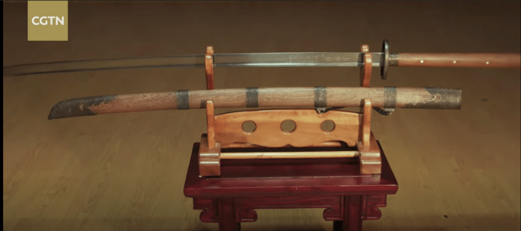 While obviously spurious, this connection born of linguistic resonance seems to enjoy a degree of official popularity. A recent mini-documentary on the miaodao, produced and globally distributed by Chinese state television, shows a museum of display of singe handed Han dynasty calvary dao when arguing for the purely domestic origins of the miaodao. Even though these swords are as mechanically different from a dandao as one can possible get-note, for instance, that their tips have a forward recurve for chopping that is totally unlike anything seen on any modern East Asian saber-these relics were held up as the definitive proof that the miaodao had nothing to do with Japan and was a purely Chinese invention. Anyone who would like to test this theory for themselves can pick up one of LK Chen’s recreations of a long Han dao which, aside from having only a single cutting edge, has no other similarities to any Chinese sword of the Ming, Qing or more modern periods.