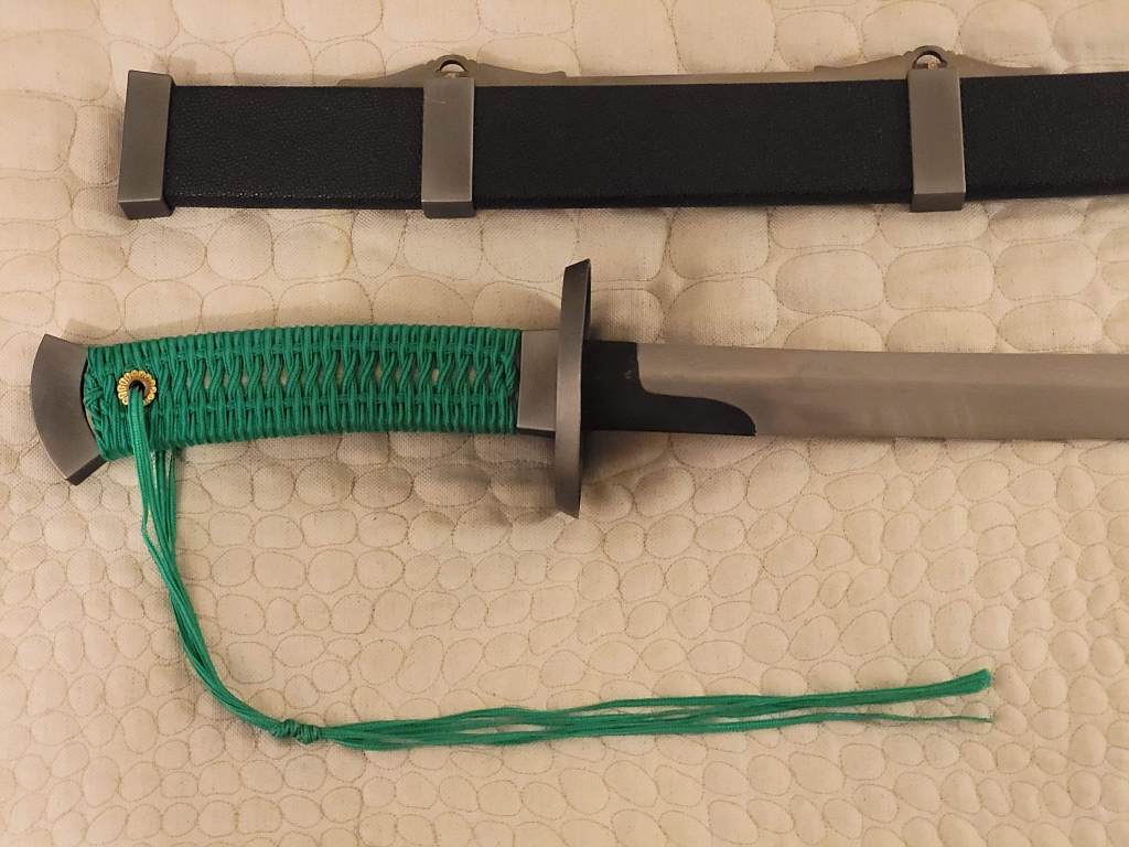 The green wrapping on the grip is tight and feels slightly abrasive. It showed no sign of wear or loosening after a few weeks of training. After looking at lots of pictured I suspect that LK Chen might have lengthened his hilt by half an inch or so, probably at the same time he added the lanyard hole and second point of mechanical connection not seen on the Vince Evans grip. I suspect that this was a great design idea as it would keep the users hand away from the lanyard pin while at the same time brining the point of balance back slightly. This might also be why the original’s POB is slightly further out than LK’s reproduction.