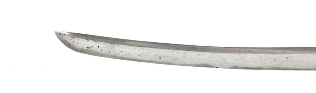 Given the forgoing discussion, it is interesting to note that the blade is somewhat longer than most peidao of the period, and indeed most of the katana that inspired the creation of the Woyao Dao. In fact, 30.5 inches would have been an average length of a tachi of the period, and thousands of these were also imported to China during the Ming. As such, I have wondered whether they may have played a role in inspiring this particular design. That said, the curvature of this blade resembles a Ming peidao more than a Japanese tachi being relatively straight at the base and middle of the blade before sweeping up as it moves closer to the tip.