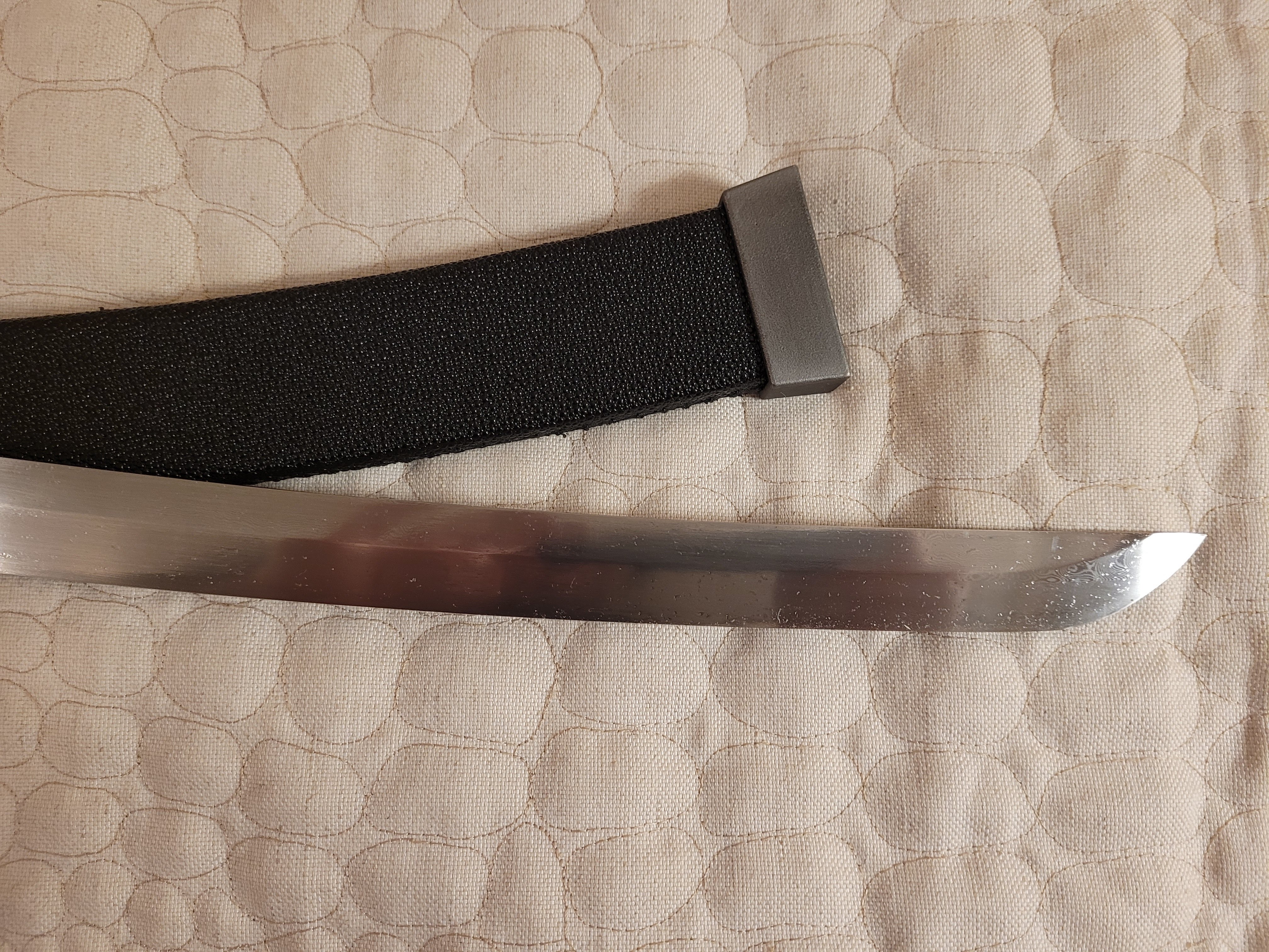 My only complaint about the blade was that the final polish showed small scratches or imperfections near the tip and along the medial ridge in several places. I am not entirely sure if this is because final polish was rushed, or if the sword had been rubbing inside the scabbard during transport. The slender profile of the blade means that there is a little more play between the blade and the scabbard even when the hilt is firmly and securely set in the mouth of the scabbard. This in no way effects the performance of the sword, and I quickly added to the collection of scratches as I did my test cutting and put the sword through its paces. All of my swords are users. Still, this may be something to be aware of if you are looking for a display piece.