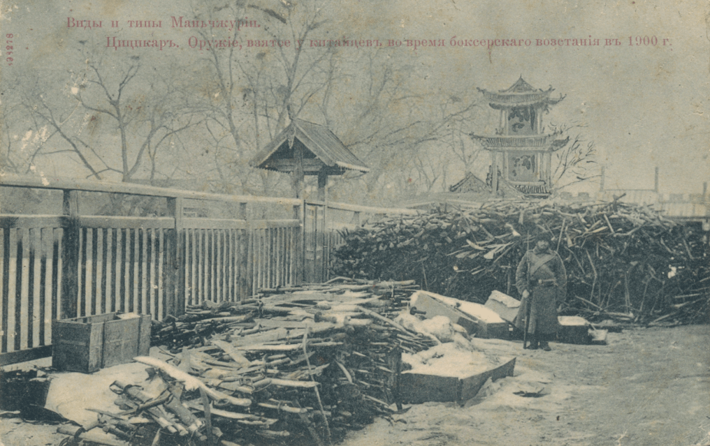 As the preceding Russian Postcard reminds us, the Chinese were not only armed with swords at this time. Modern firearms had been a critical part of the Empire’s arsenal since the massively destructive Taping Rebellion. And while Western images of the period tend to focus on groups of soldiers armed with archaic matchlocks or massive, strange looking, wall guns, the Western armies marching on Beijing in 1900 quickly learned that other Chinese until were armed with the latest technology and knew how to use it.